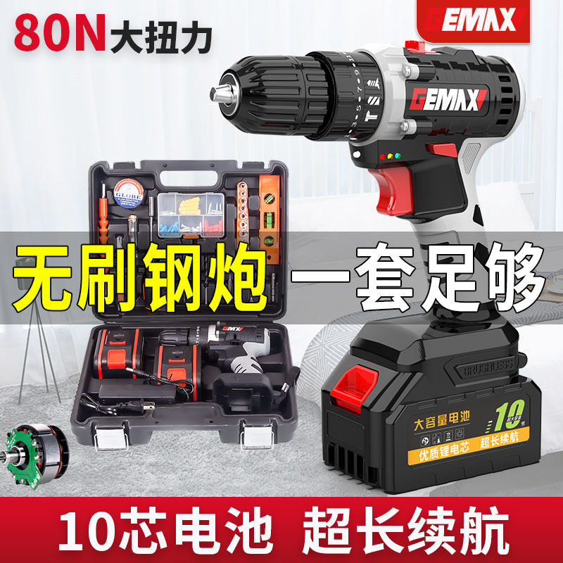 Brushless hand electric drill Home lithium electric hand drill rechargeable electric screwdriver percussion drilling electric rotary punching tool-Taobao