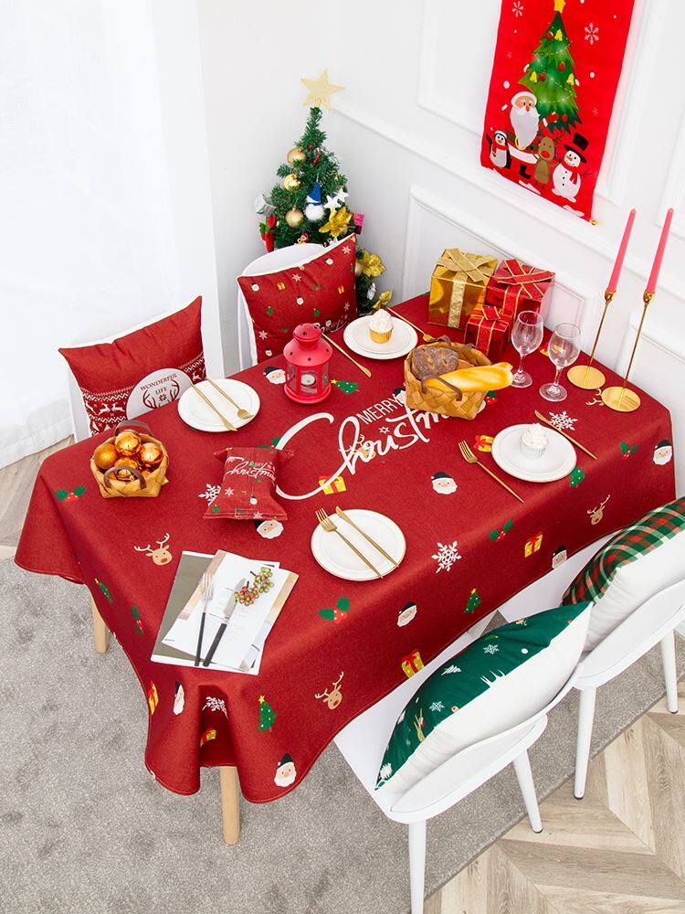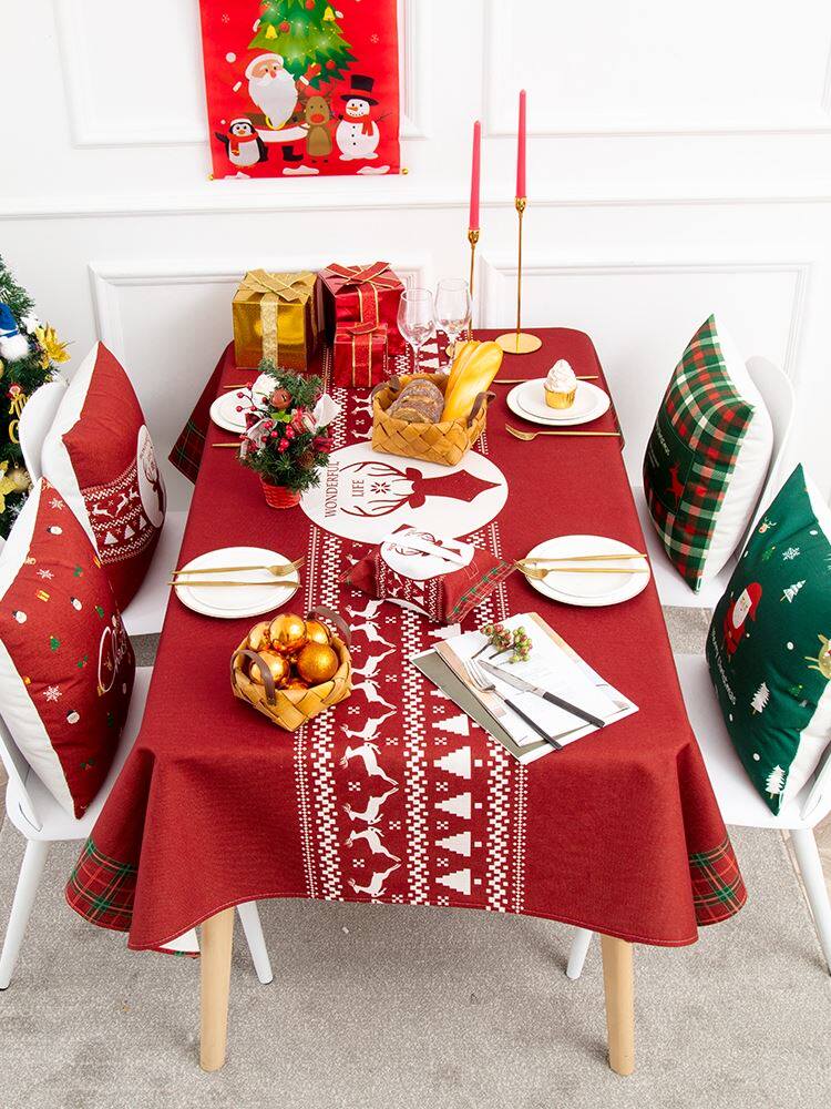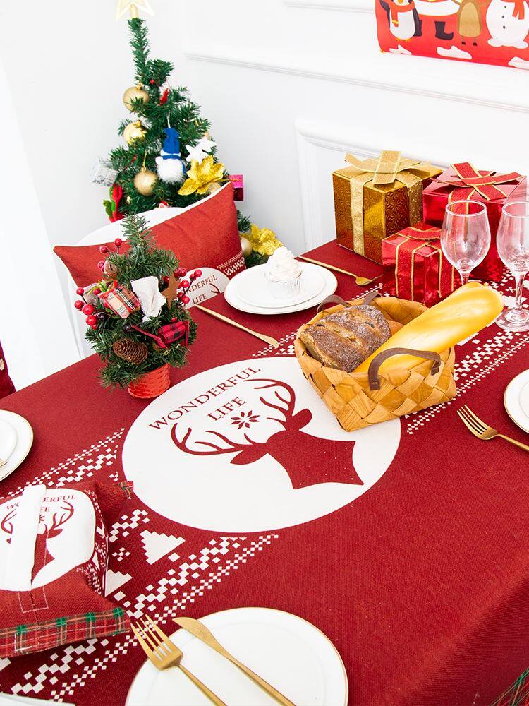 christmas table cloth Christmas table cloth red elk deer Christmas Eve dress with dinner table cloth-Taobao