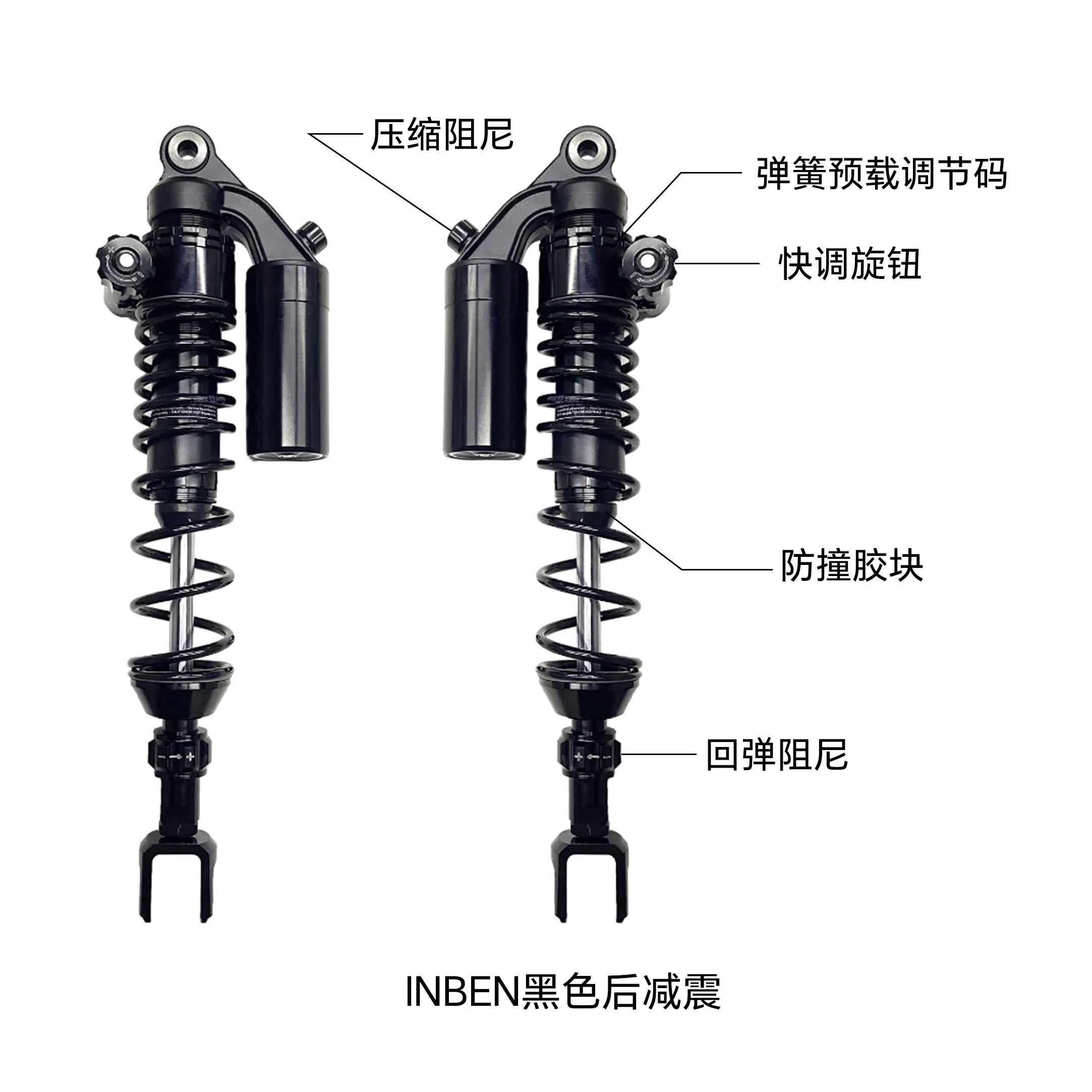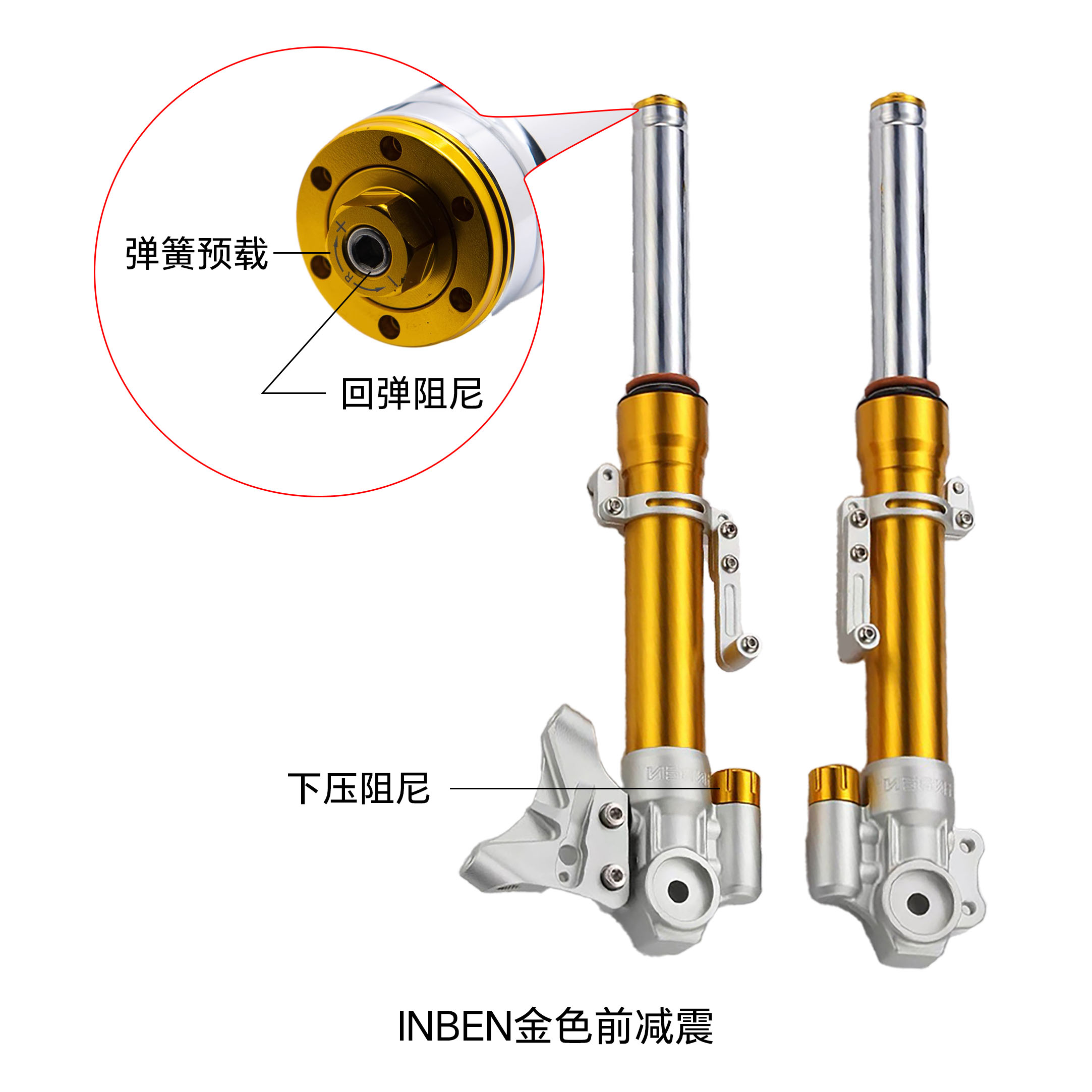 INBEN black rear damping pair INBEN gold rear shock absorbing pair INBEN black front damping pair INBEN gold front damping pair of Orlins gold rear damping