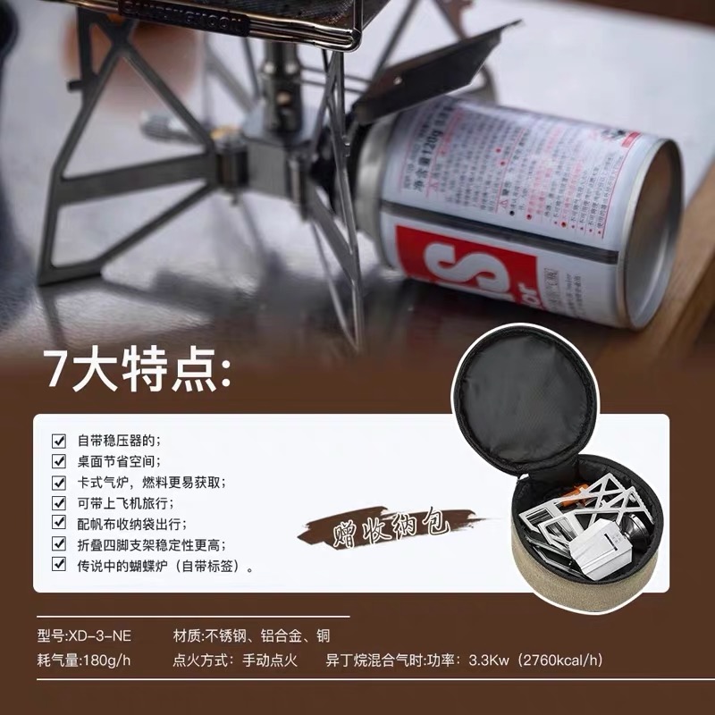 XD-3-NE Butterfly Stove-Send Lightning Lighter Adaptation Stove Table Windshield Storage Bag Adaptation Alpine Gas Tank Adapter Set