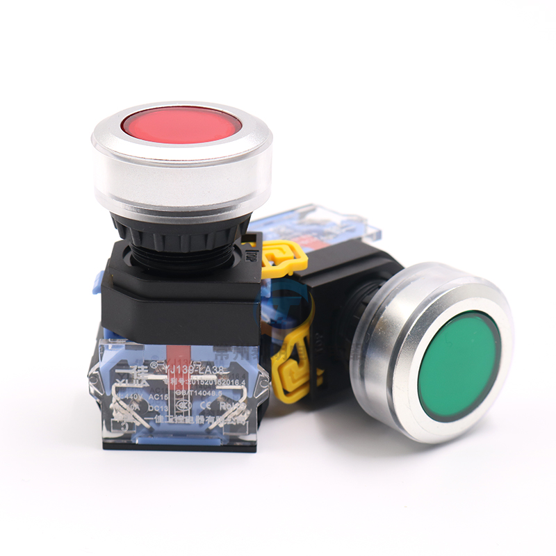 A good 30mm power starts flat head self - reset self - lock button switch LA38-11BN ZS open