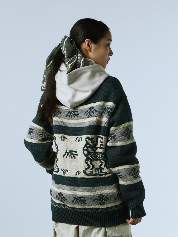 MOUNTAINFEVER AW22 Retro Hainan National Totem Coarse Knitting Jacket