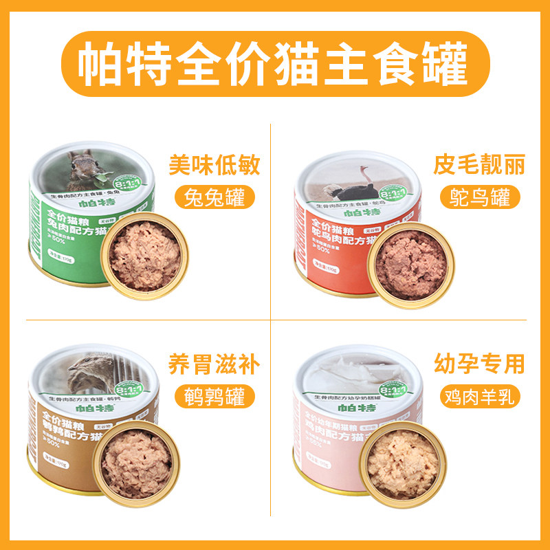 Puppy staple cans (chicken flavor)170g*2 into cat staple cans (rabbit taste) 170g*4 into cat staple cans (ostrich taste)170g*4 into cat staple cans (quail taste)17