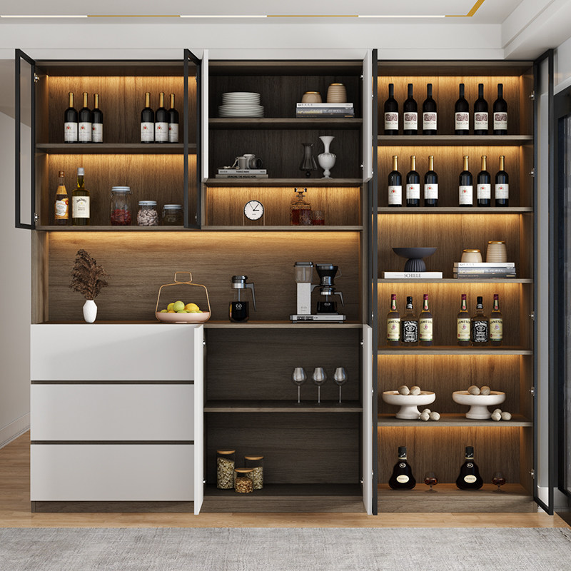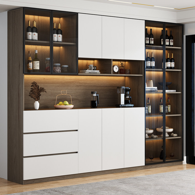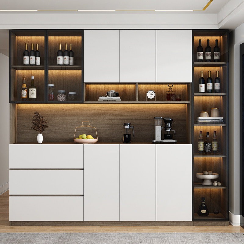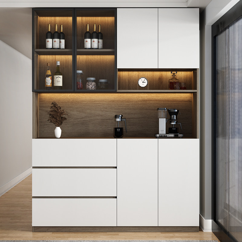 Dining Side Cabinet High Cabinet Integrated By Wall Wine Cabinet Living Room Lockers Modern Minimalist Wind Kitchen Cabinet Solid Wood Disposal Cabinet-Taobao
