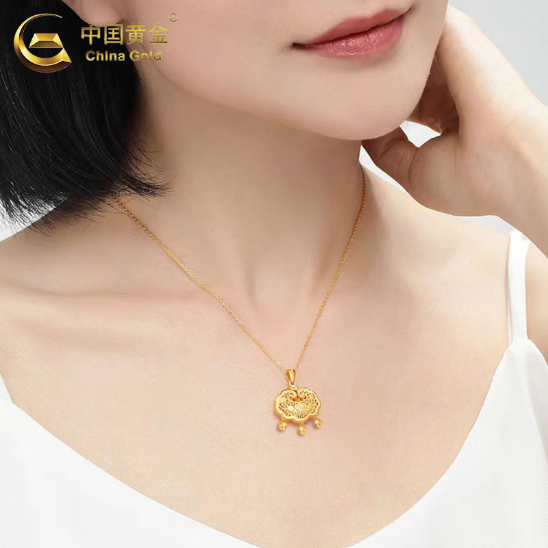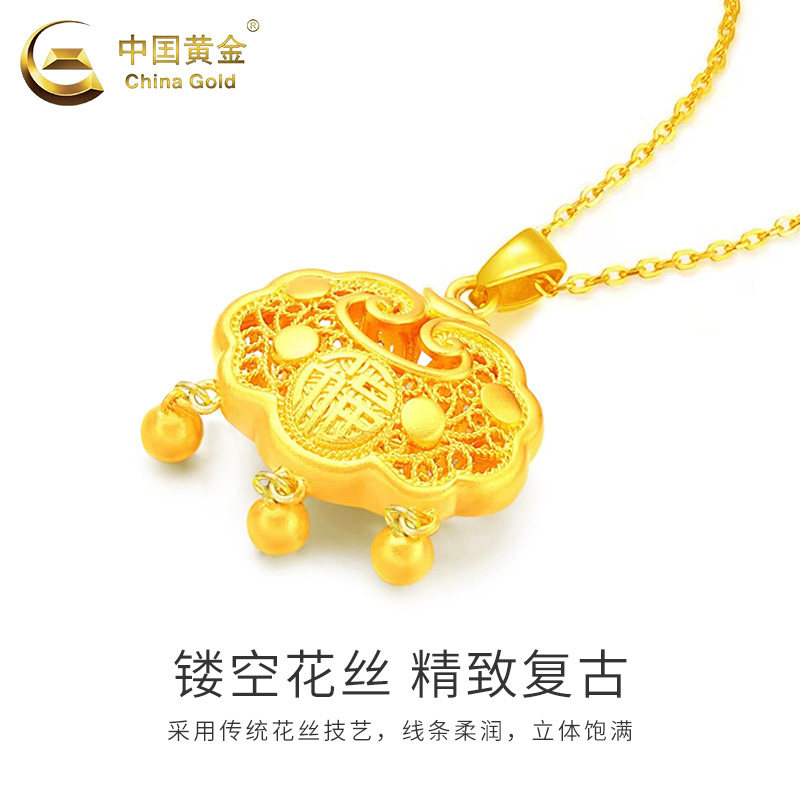 China gold long life lock 999 foot gold pendant woman Ping An locks adult necklace bell baby pendant accounting for gold-Taobao