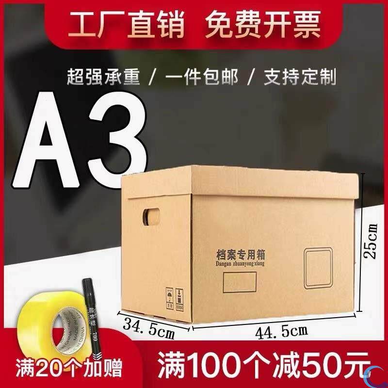 Kraft paper A3 paper file special box large carton with cover company document data storage finishing box silver
