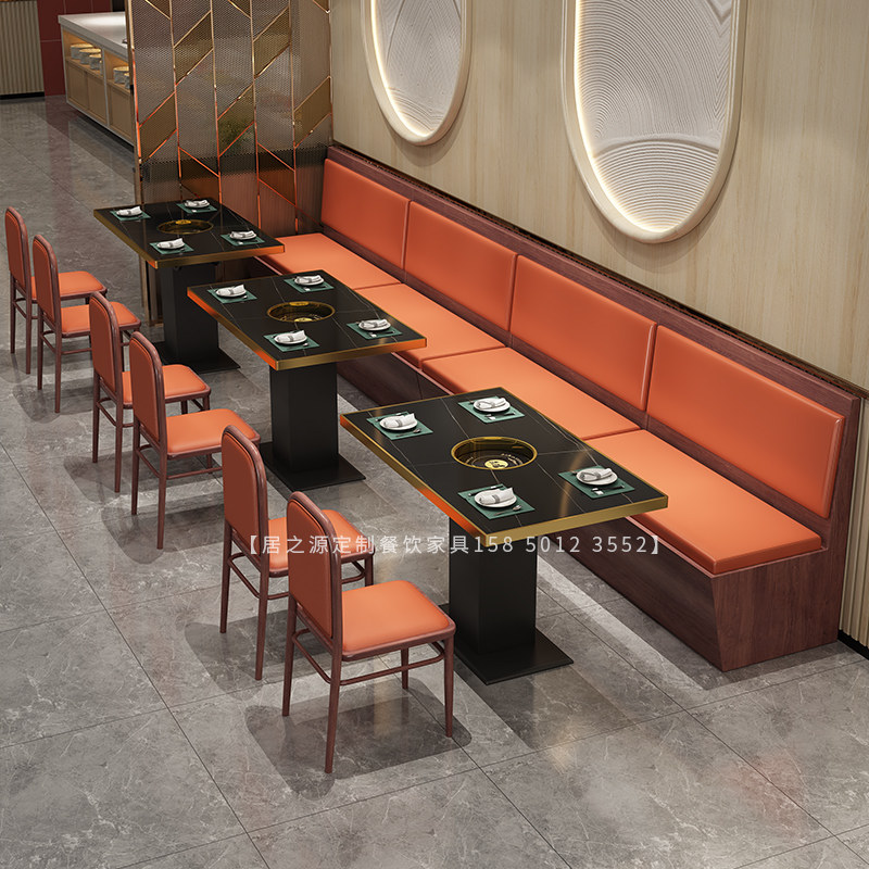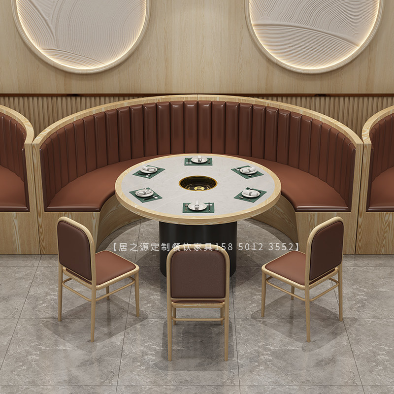 Hot pot table induction cooker integrated smokeless commercial purification rock plate solid wood marble roasting rinse integrated round table hotel