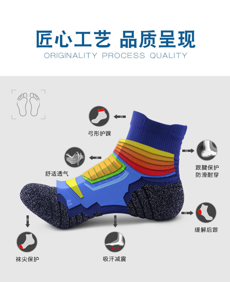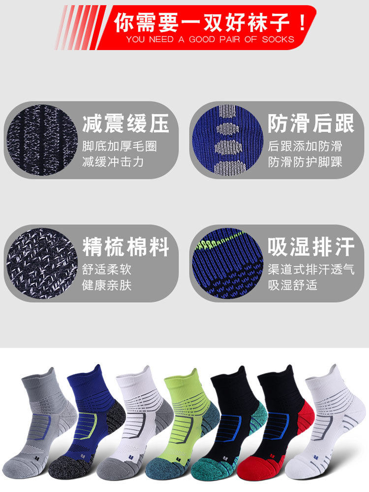 Men's Professional Sports Socks Middle Tube Pure Cotton Running Basketball Soccer Socks Breathable Sweat Absorbing Thick Towel Bottom