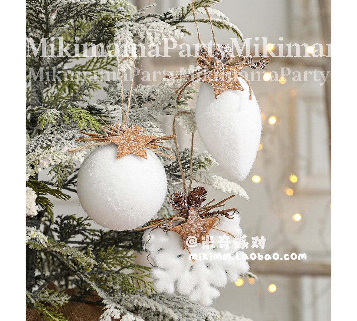 Cross-border Amazon 8cm foam ball white snowflake water drop bell sticky decoration Christmas ball decoration pendant hanging ball