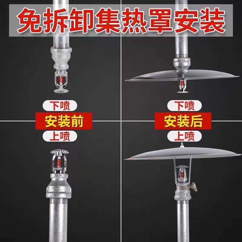 Fire sprinkler head heat collecting cover does not need to be removed. The upper spray heat collecting plate does not need to be removed. The spray heat collecting cover does not need to be removed. Upright type upper spray decorative cover.