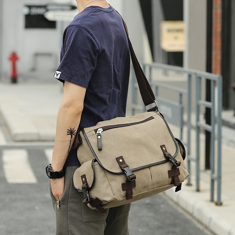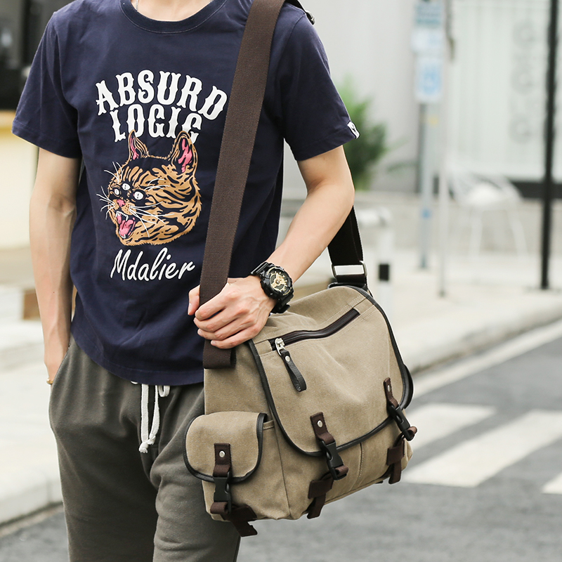 Large Capacity Canvas Retro Diagonal Satchel Satchel Bag Men's Single Shoulder Bag Multifunction Day Ensemble POOR BAG COMPUTER BAG