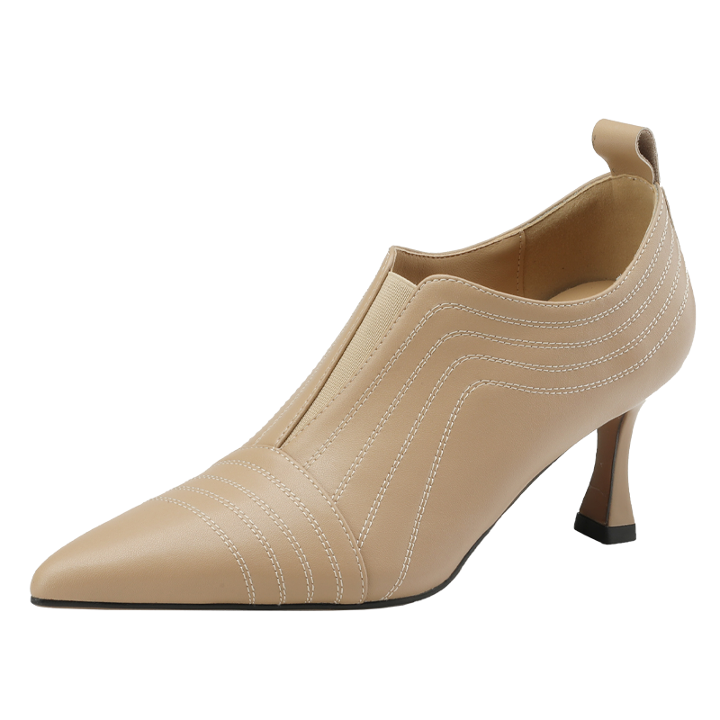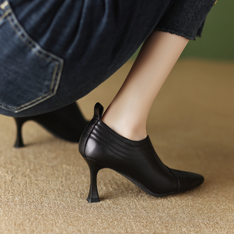 Naked French temperament design sheep skin boots female spring mouth single shoe pointed heels heels ankle boots