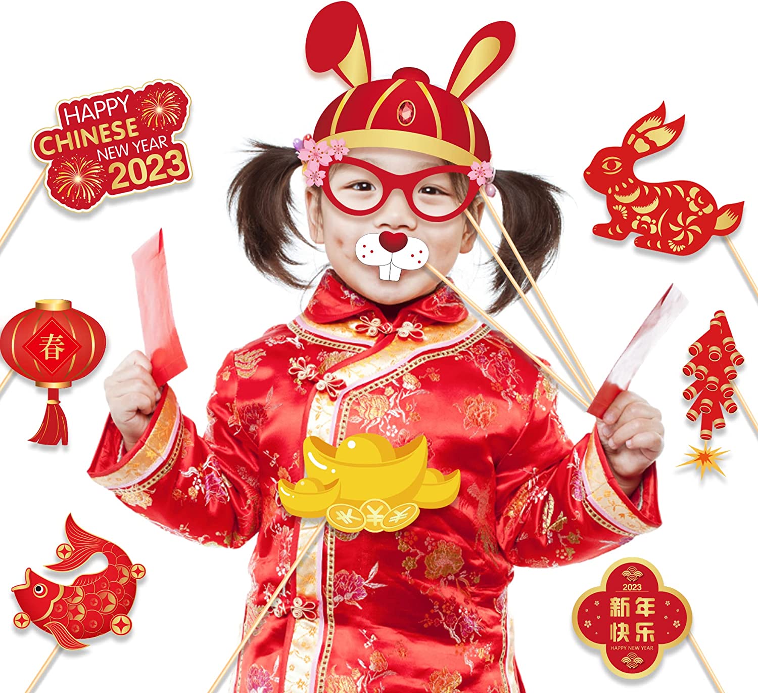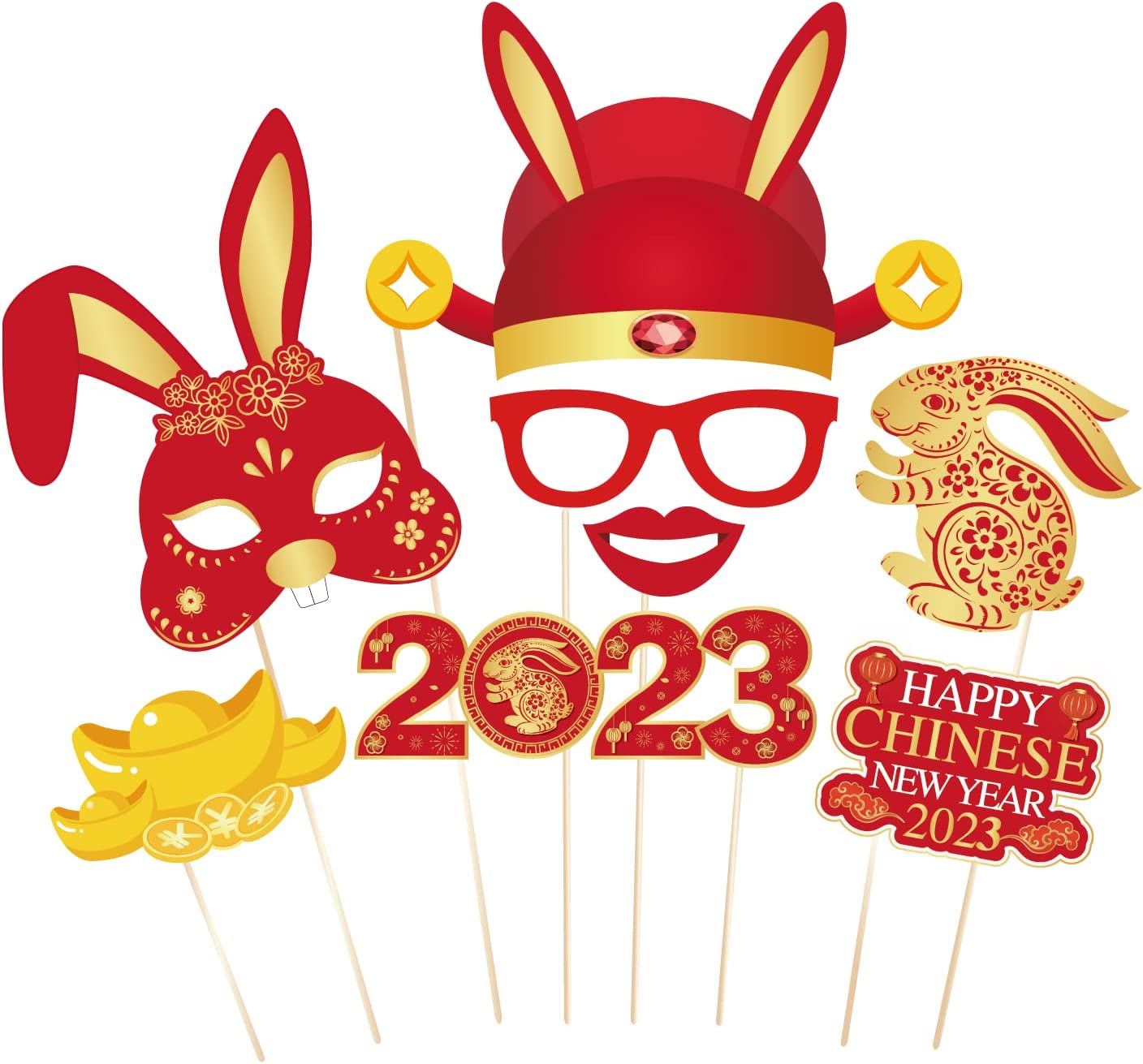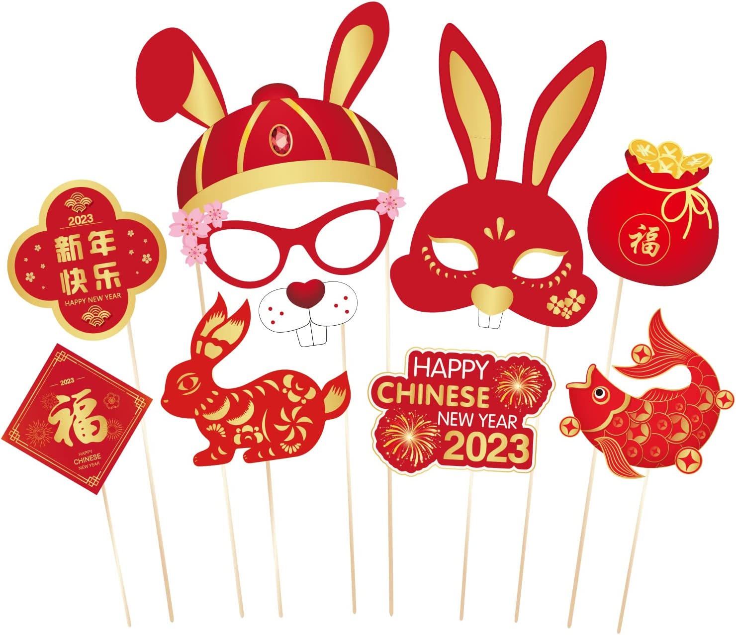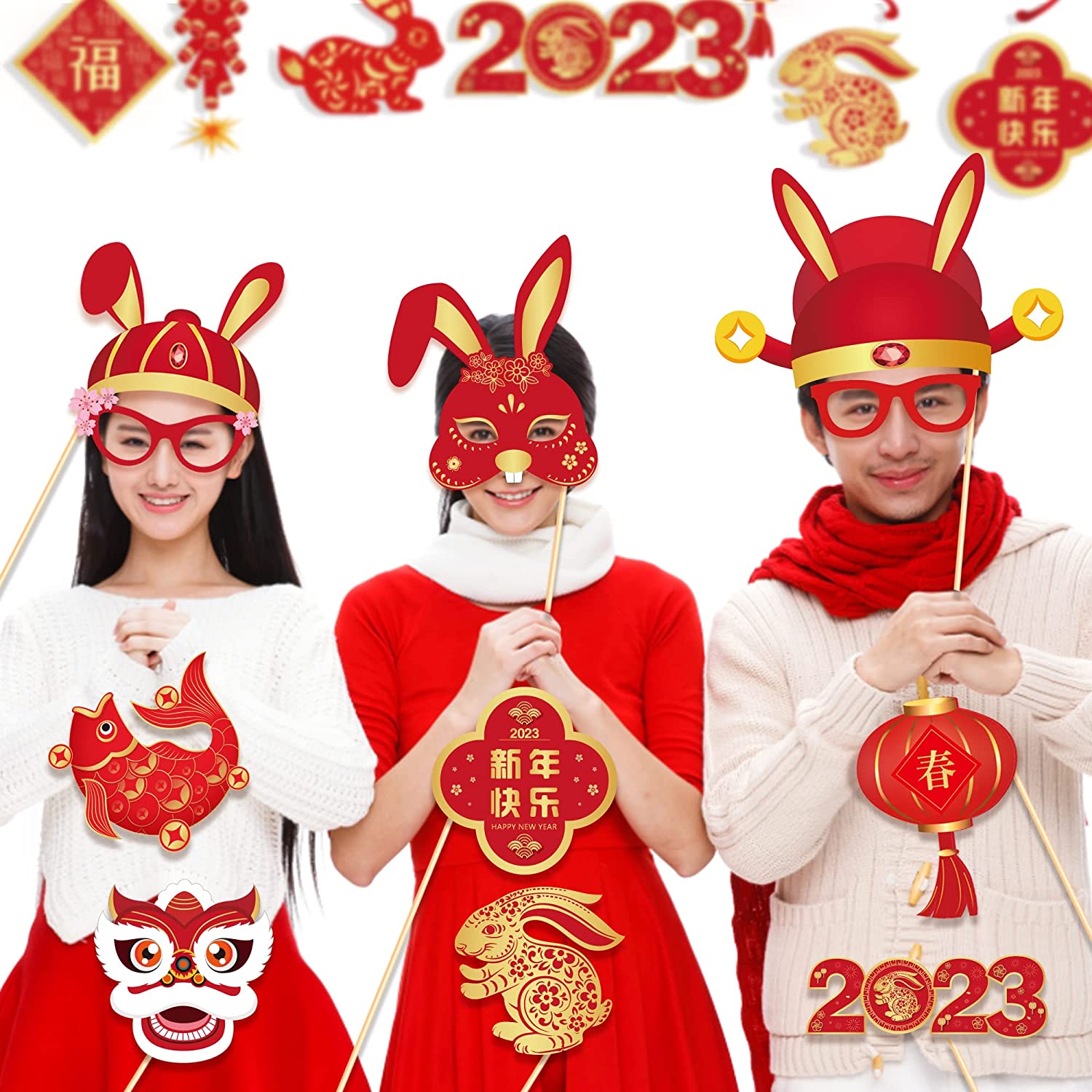 Chinese Red New Year's Dark Hat Beard Glasses Photo Handheld Prods Company Party Event