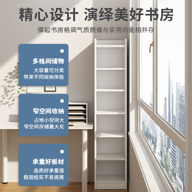 Bookshelves Easy home Small bedrooms narrow slit floor bookcase leaning against wall shelving to contain stratified shelf-Taobao