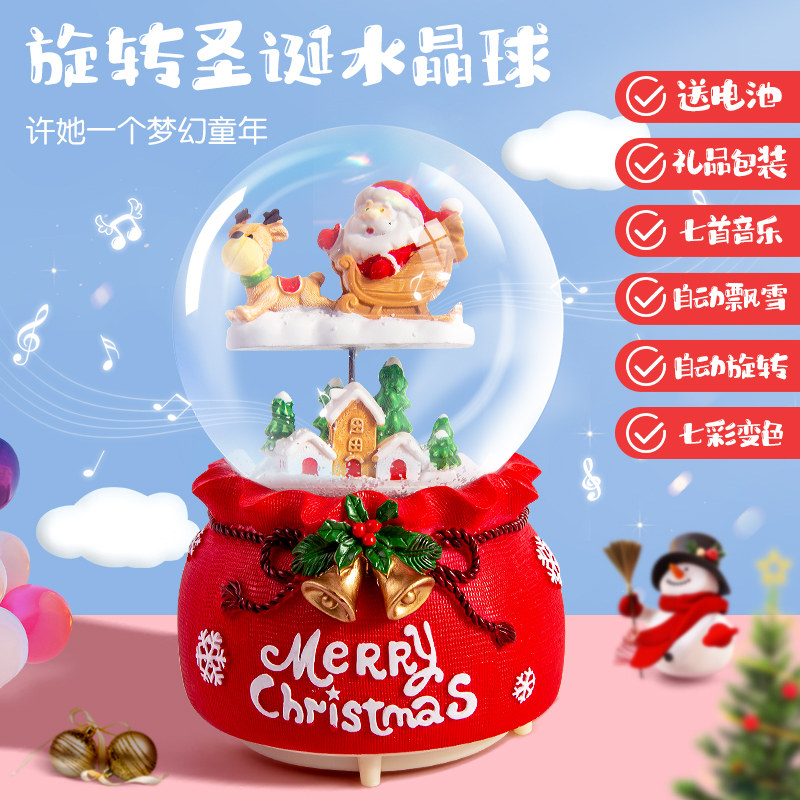 Christmas Music Box Children Octaonic Box Water Crystal Ball Girl Birthday Gift Snowflake Glass Little Girl Swing Piece-Taobao