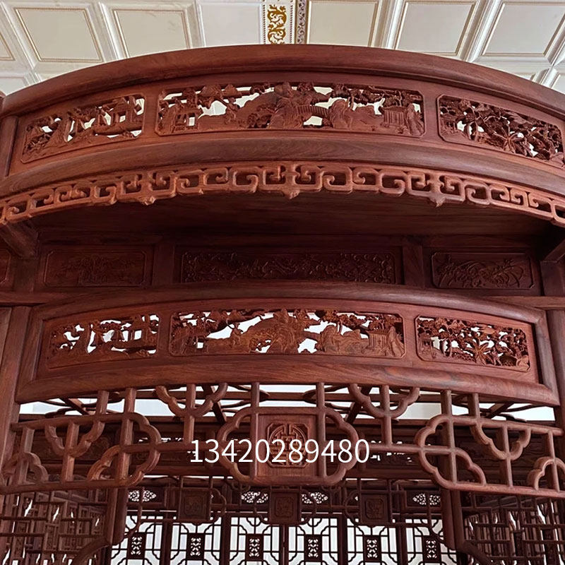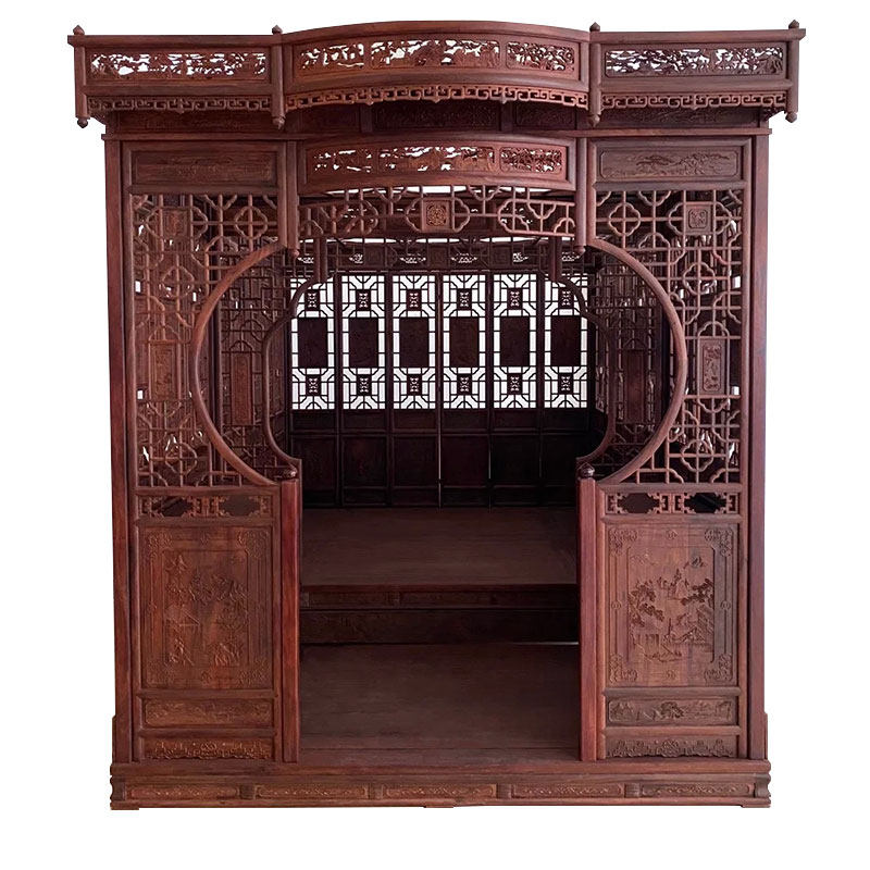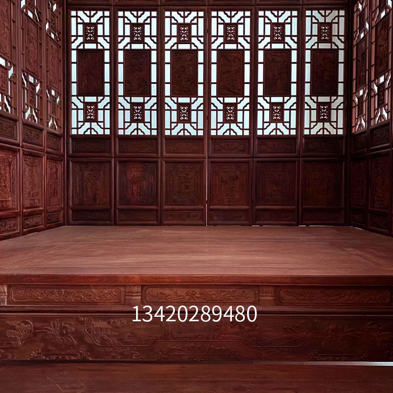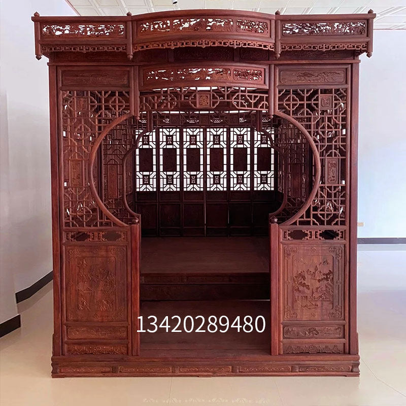 Mahogany stepping bed Chinese style ancient style bed Chinese style rosewood antique four-pillar palace bed carved thousands of work retro shelf bed