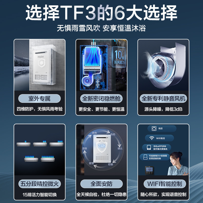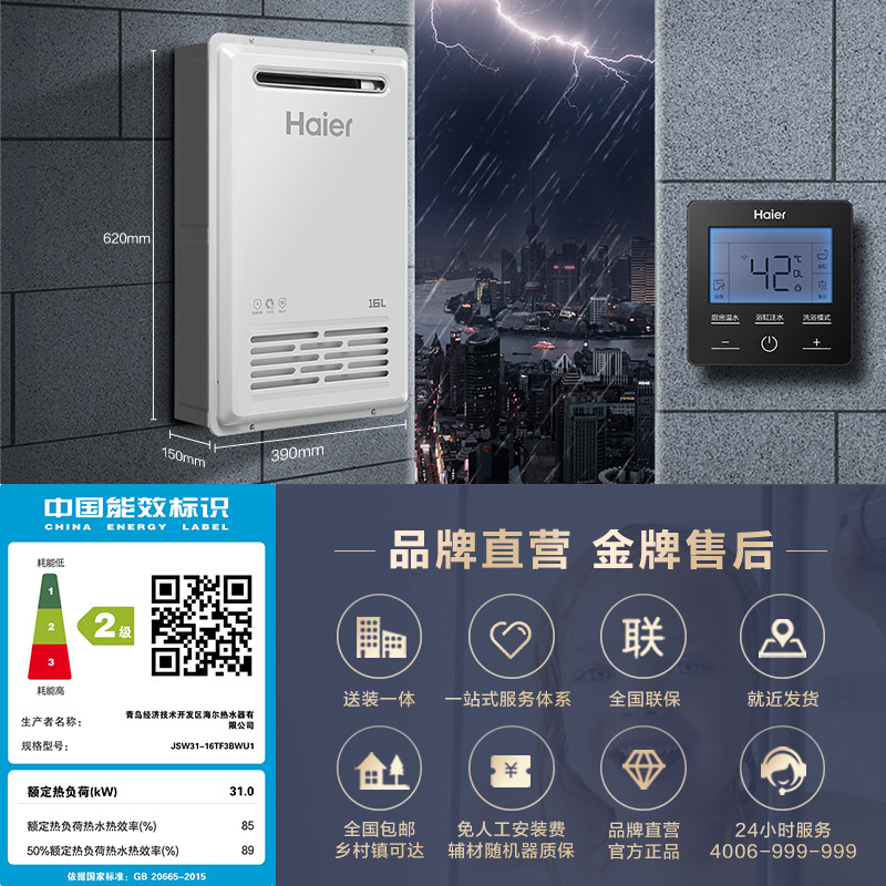 Haier gas water heater Home natural gas 16 liter airtight and stable combustion cabin intelligent thermostatic outdoor machine TF3-Taobao