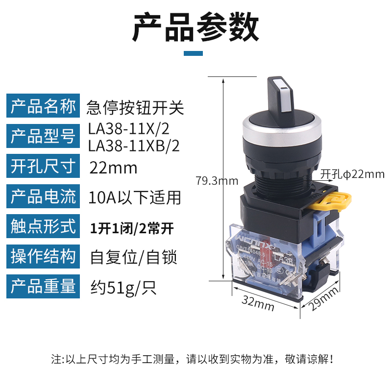 WCNNX Nicey Self-Lock Power Knob Convert Button Switch 22mm LA38-11X2 20X3 B