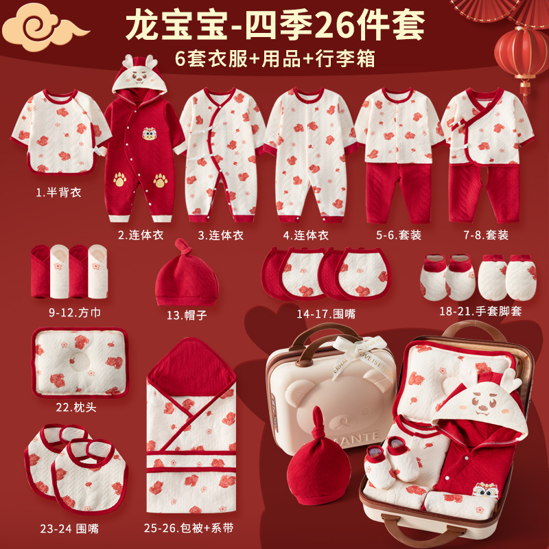 Dragon baby beginner baby gift box thin and pure cotton clothes suit Long year newborn baby to be born with a full moon gift-Taobao