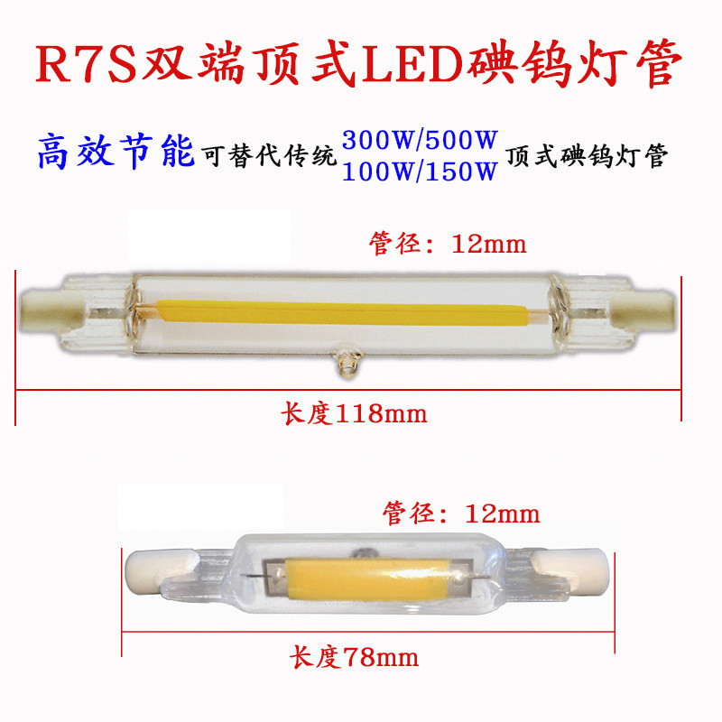R7S dimmable LED glass tube solar tube 78mm118mm 220V non - iodine tungsten lamp cross - plug halogen lamp