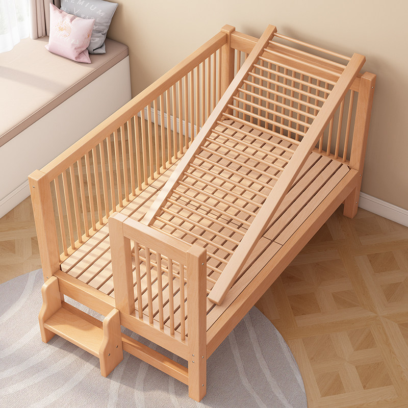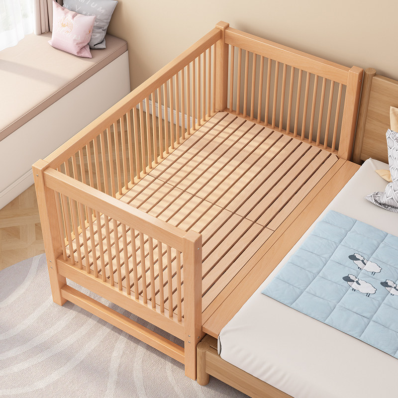 Solid wood children's bed splicing bed high guardrail beech baby cot widened bed spell big bed crib can be customized