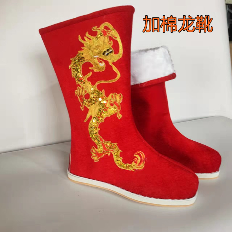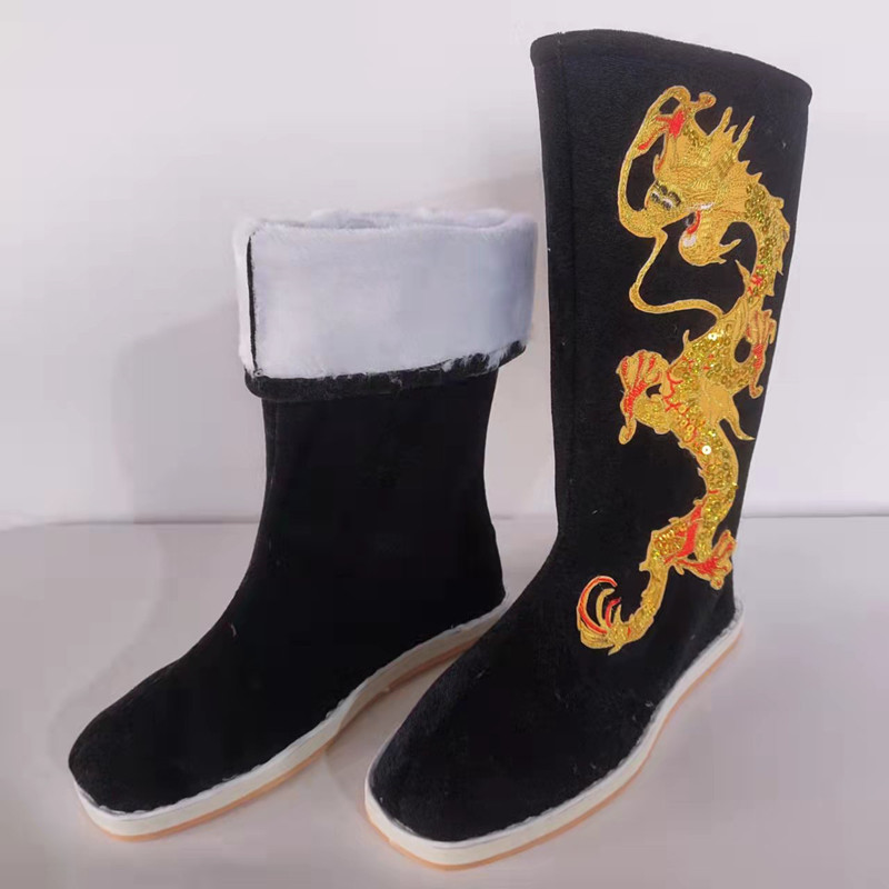 Ancient Dress Plus Dragon Tattooed Boots Add Cotton Emperor Dragon Boots Crested Boots Male and Men's Boots On the Boots Ancient Costume Show Shoes Han-Taobao
