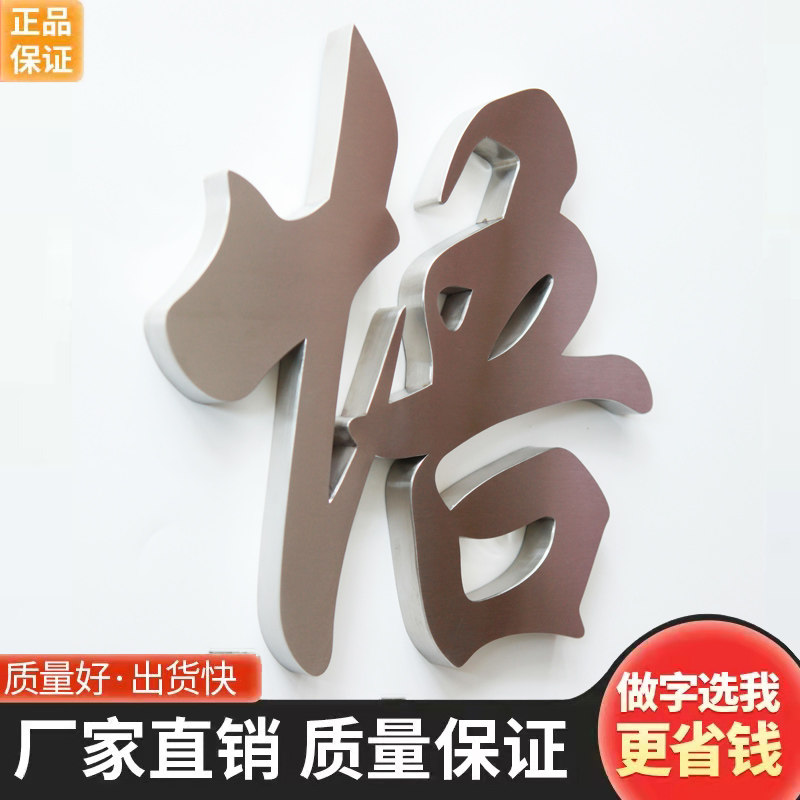 Fine work wire drawing stainless steel word making baking varnish metal imitation ancient bronze word solid character titanium gold word door head sign set to do-Taobao