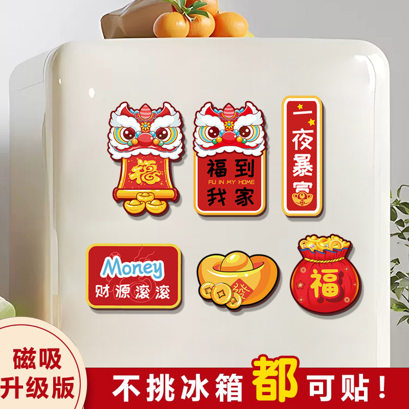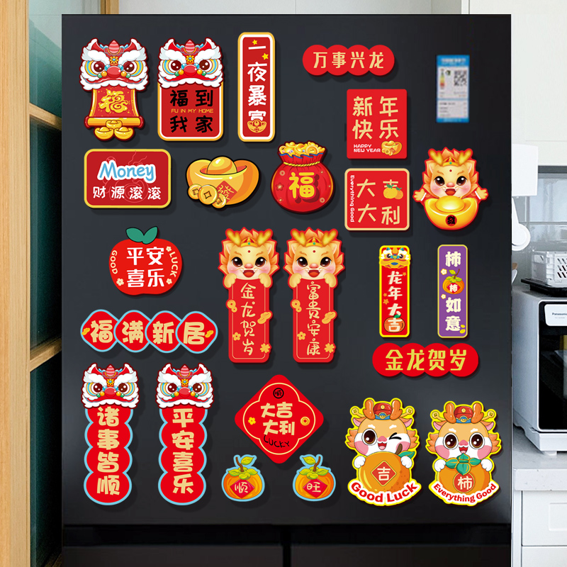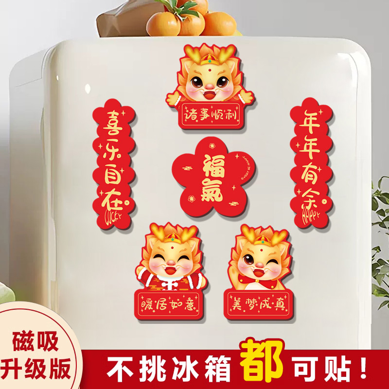 2024 New Year's Lunar New Year's New Year fridge with magnetic patch with magnetic patch Heqing creative decoration cartoon Ping An Happy Joy Magnetic couplets-Taobao