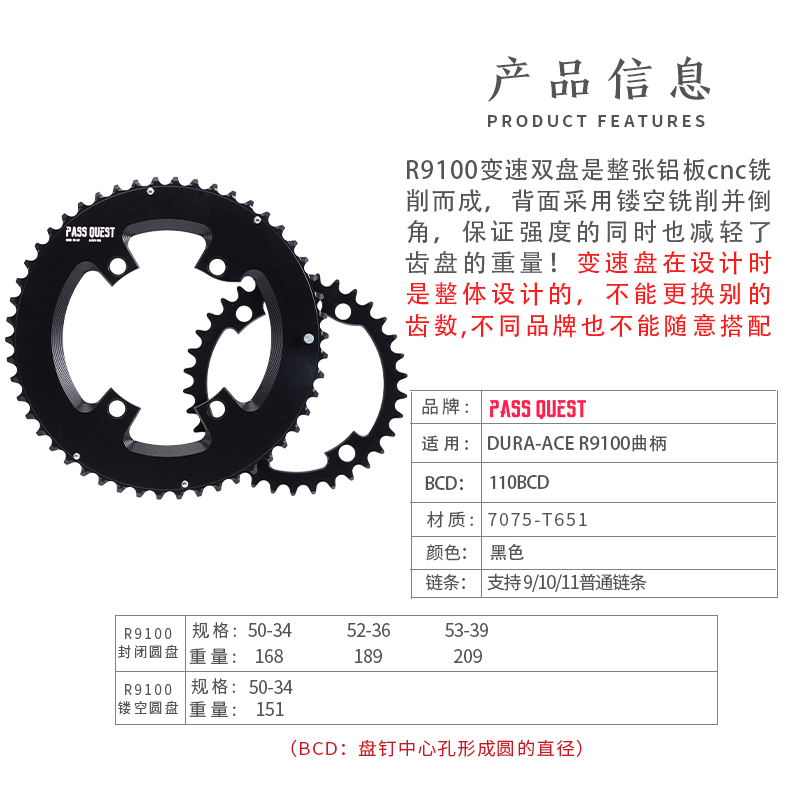 110BCD-50T 110BCD-50T 34T 110BCD-50T 110BCD-50T 34T hollowed-out 110BCD-52T 36T 36T 110BCD-53T