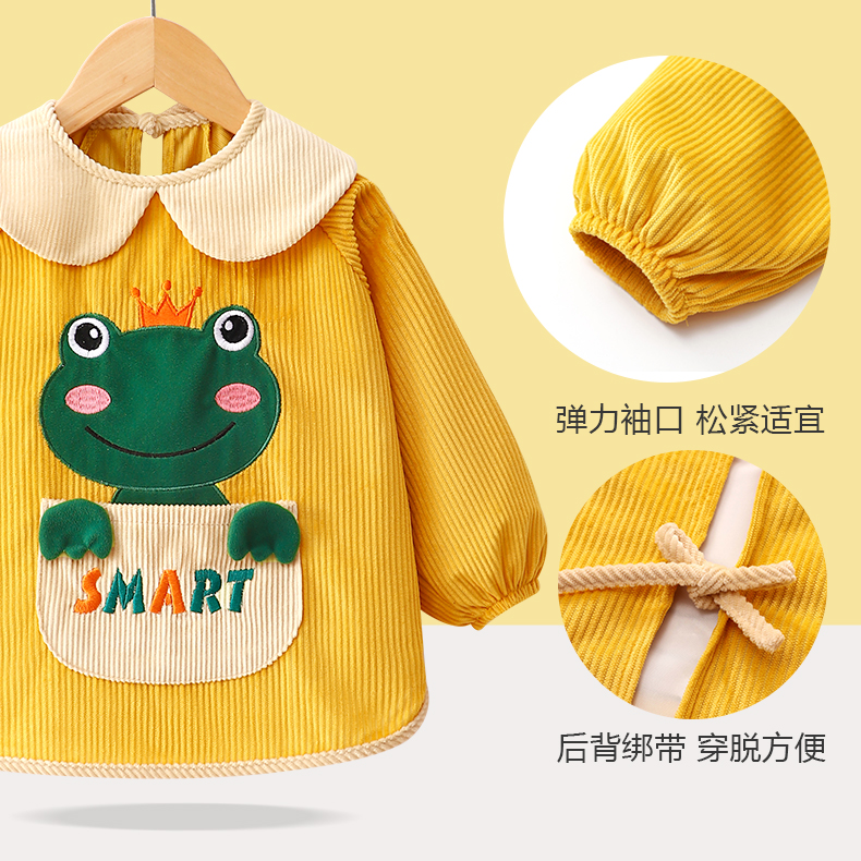 Baby gown autumn and winter waterproof and anti-dirty corduroy cute boy gown baby eating bib outer wear protective clothing