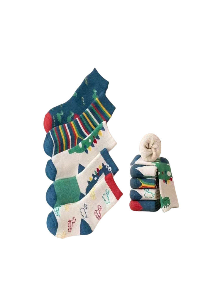 Children's socks in autumn and winter pure cotton thicker hair socks in socks cartoon dinosaur trend boy and girl socks