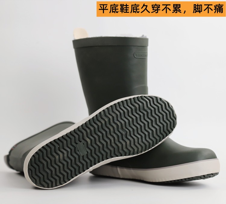 European and American flat bottom middle cylinder thicken plus suede integrated plush anti-slip light warm men and women rain shoes rain boots water shoes-Taobao