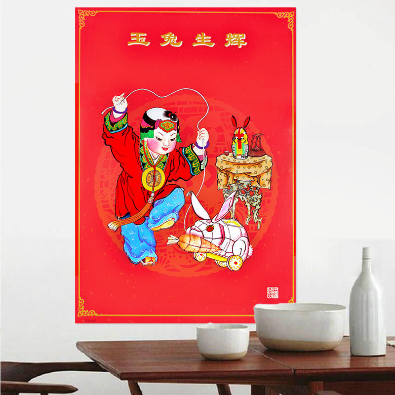 (5) Tianjin Yangliuqing Year Painted Rabbit Year New Painted Jade Rabbit Shenghui Spring Festival Chinese Printed Poster-Taobao