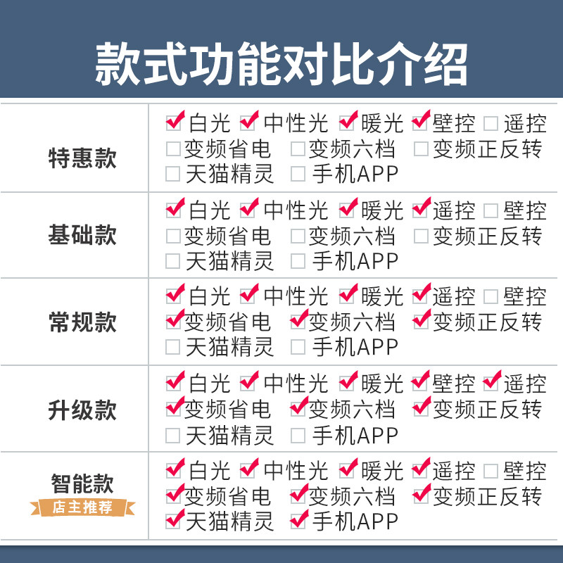 (Ex-gratia) White 36 Inch Light Wall Control (Base) White 36 Inch Variable Light Remote Control (Conventional) White 36 Inch Frequency Conversion Power Saving (Upgrade) White 36 Inch Frequency Conversion Double Control (Smart)