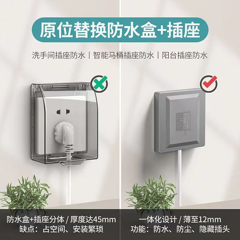 Waterproof 86 type invisible socket embedded panel refrigerator toilet power supply waterproof hood concealed recessed socket-Taobao