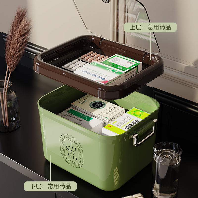 Light and luxurious medicine box green palm (double-layer containing increased capacity)