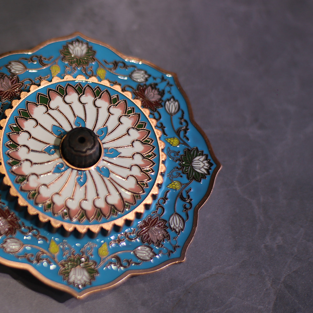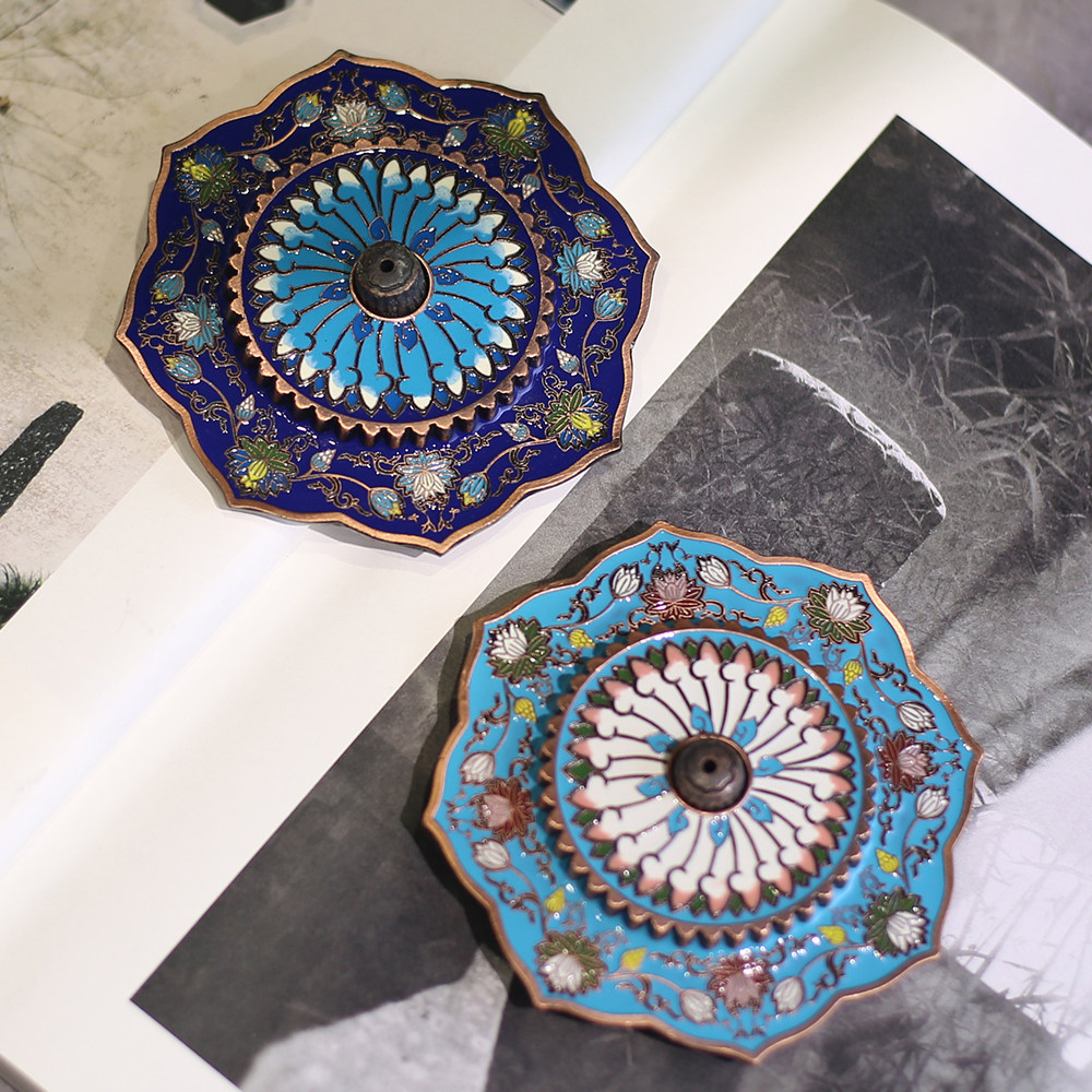 Zen Hearts Lotus metal enamel Enamel Hand-painted Landscape Thai Blue Fragrant Lavender Inserts sandalwood Fragrant Sandalwood Seat Tea Road Pendulum-Incense Stove-Taobao