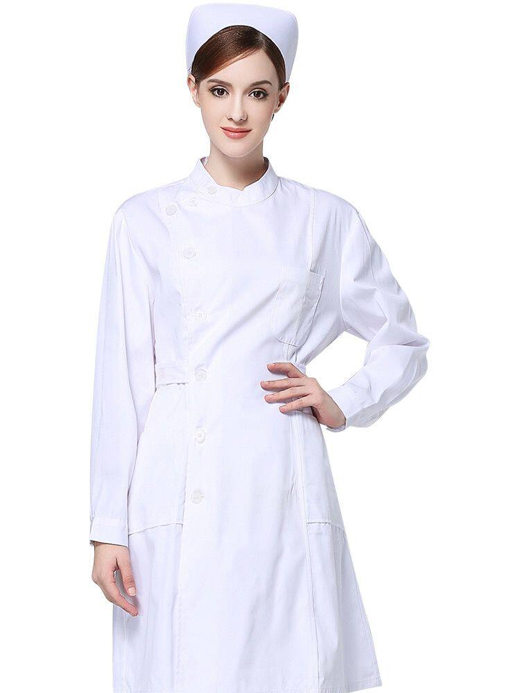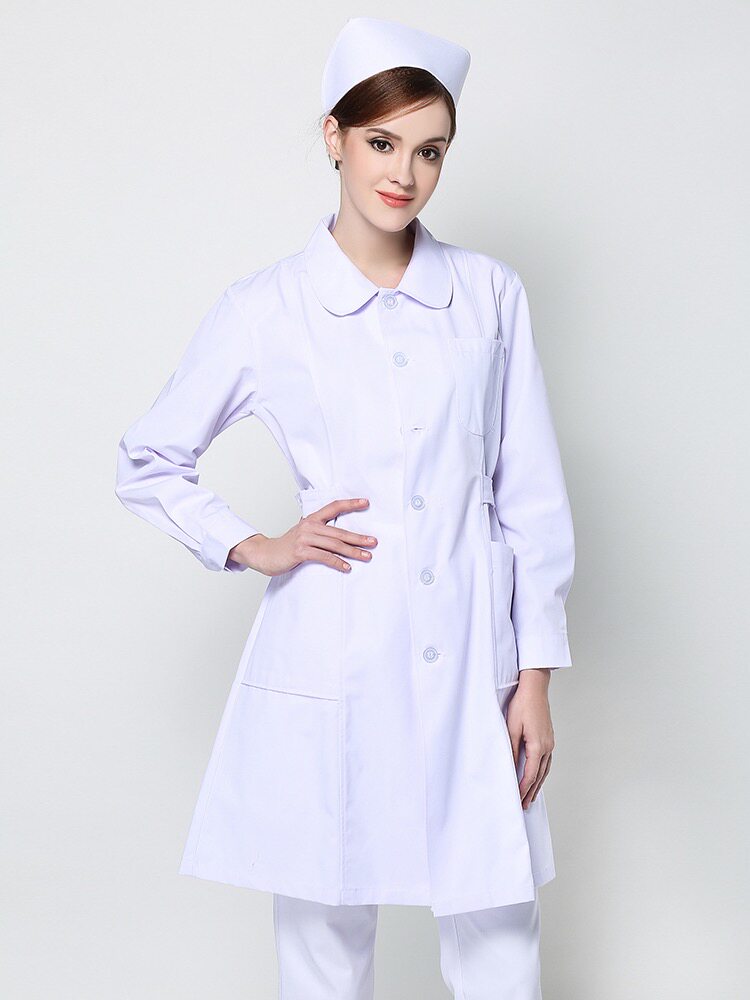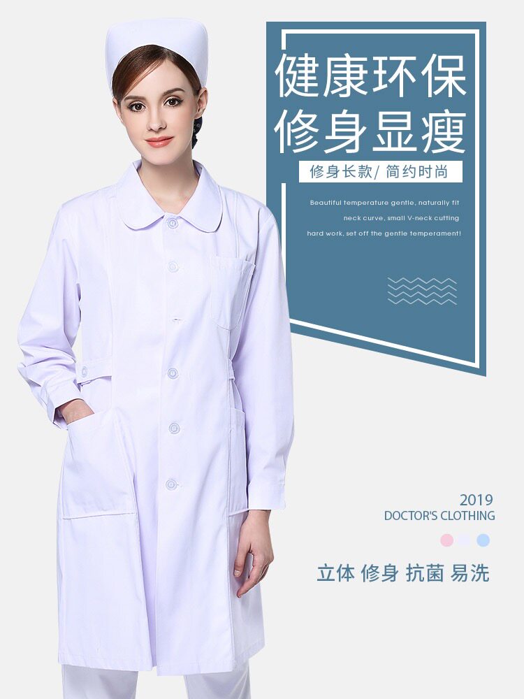 Nurse Serving Winter Dress Woman Long Sleeve White Large Vest Oral Dental Doctor's Medication Store Pink Collar Work Suit