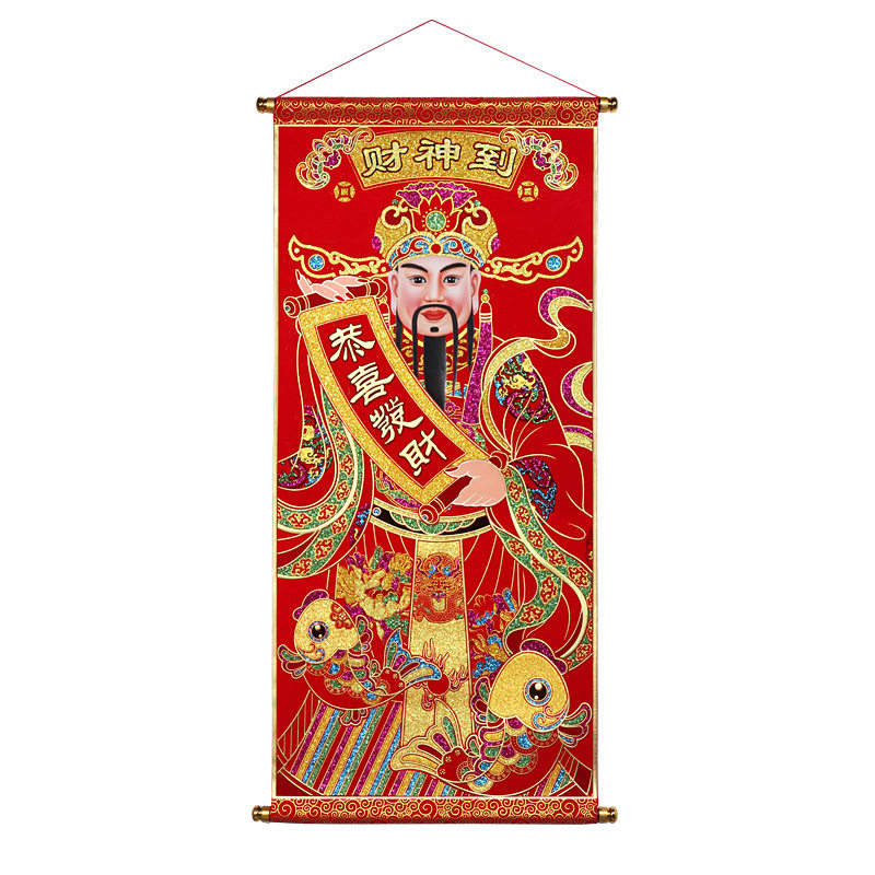 Velvet Nine Fish God of Fortune Large Velvet Cloth Pisces God of Wealth Large Size (92*47) 2- Ruyi God of Wealth Small Hanging 36# (Length 73cm Width 36c3- Five-way God of Wealth Small Hanging 36# (Length 73c
