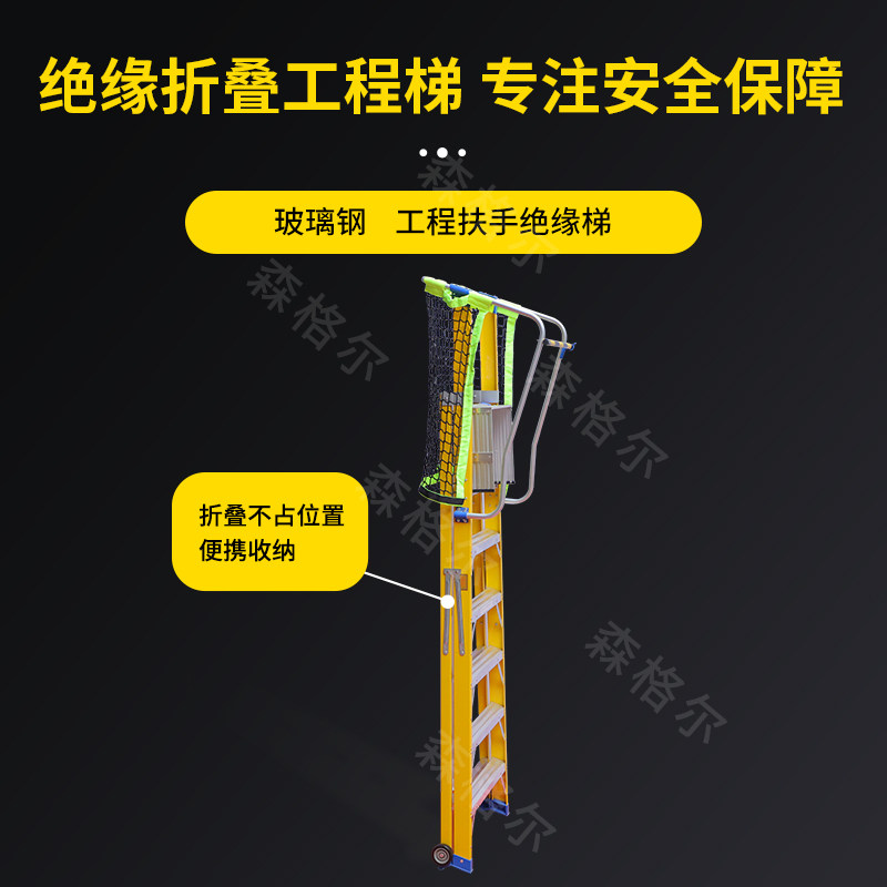 Household folding telescopic engineering platform armrest ladder herringbone ladder glass steel ladder thickened climbing ladder safety lift