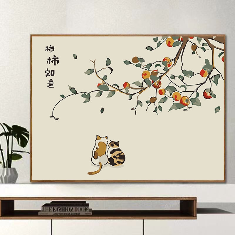 Persimmon Ruyi Digital Oil Painting Diy Hand-painted Hands-on color Painting with good Chinese Living Room Decorative Painting Hang Painting-Taobao