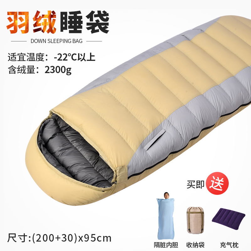 Down Sleeping Bag Outdoor Adults Winter Camping Adults Couple Step Up Ultralight Portable Duck Suede Sleeping Bag Anti-Chill Thickening-Taobao