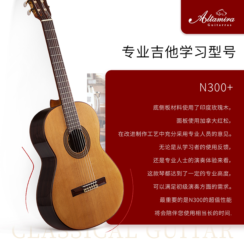 Altamira Aldamila N300 study test grade playing male and female child face single classical guitar AA level white pine-Taobao