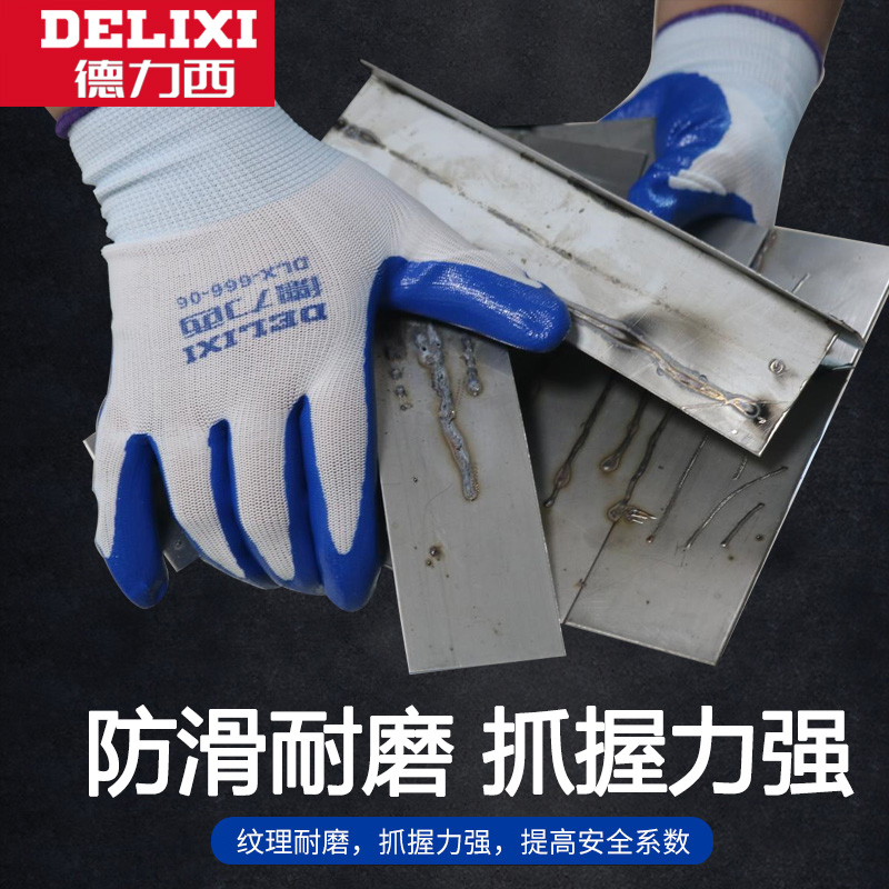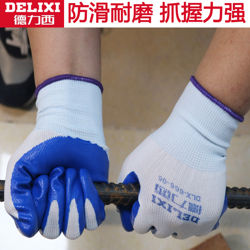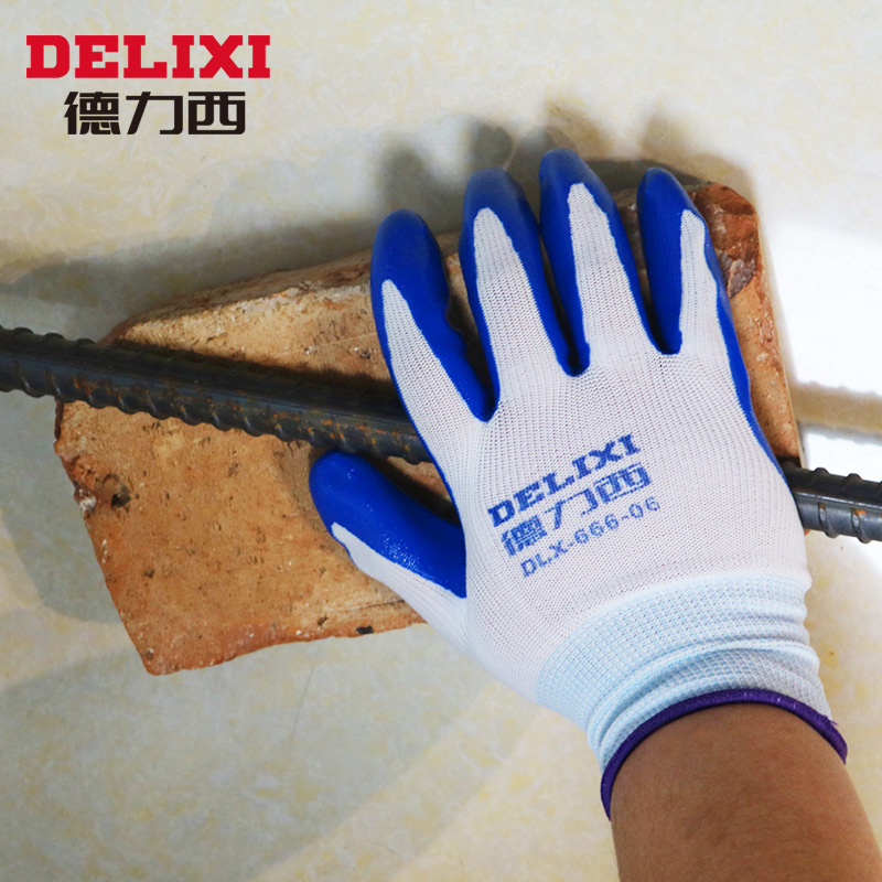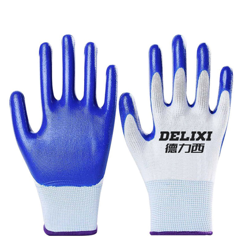 Delixi Gloves Labor Gloves Gloves Labor Gloves Work Anti-Slide Waterproof Rubber Pinitrile Gloves Workshop