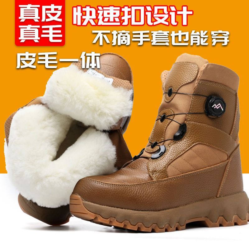 Lamb fur integrated warm and large cotton shoes Tthick male and female winter outdoor anti-chill cotton shoes true wool-Taobao