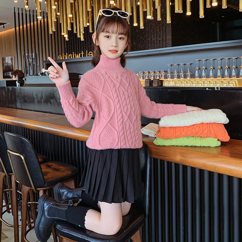 Girl sweater children in autumn and winter 2022 new big child blouse white plus thicker high - collar Korean system