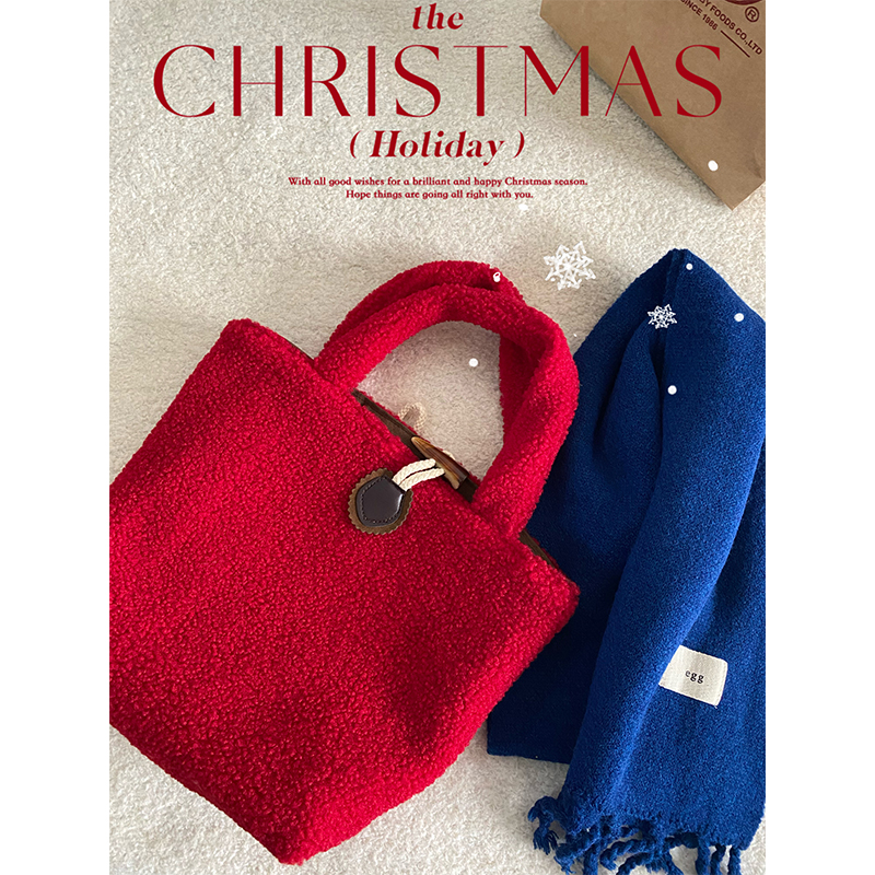 Winter Chao is a beautiful red cow corner button bag for New Year's fur bag for the winter and winter