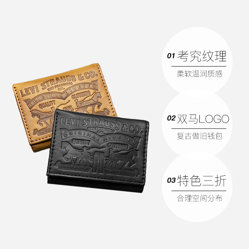 (self-employed) Levi's Levi's Lives retro Ancient Tide Card Double Marloo Triple Fold Wallet Short man's leather clip-Taobao