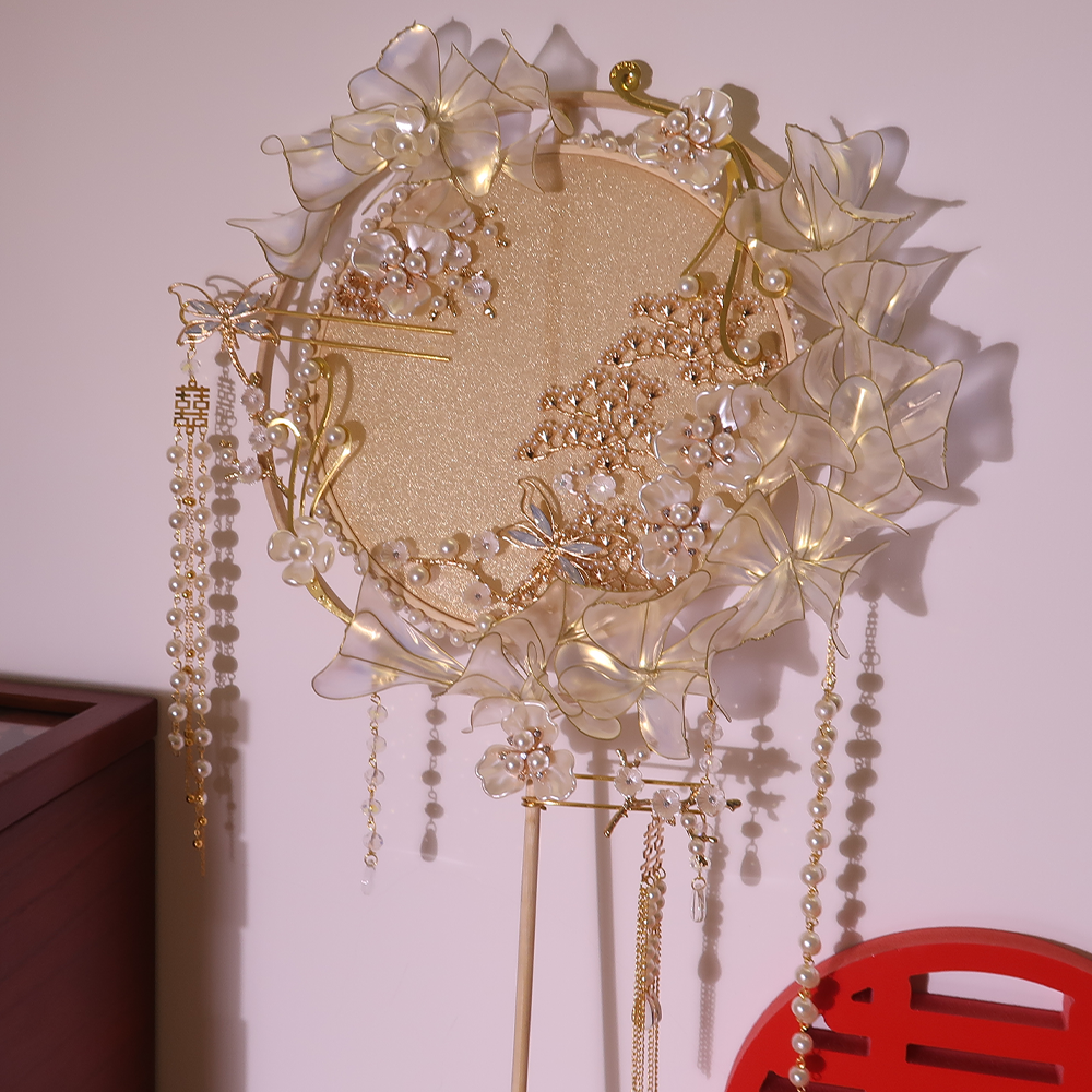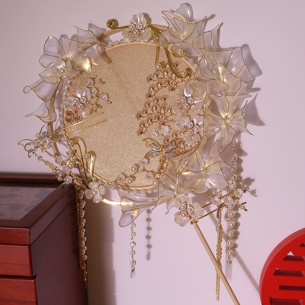 Champagne bride fan fan fan fan Xiu fan fan clothes handheld flower diy material package wedding fan finished product