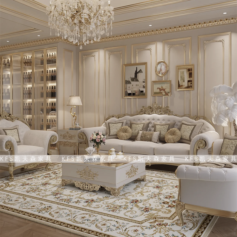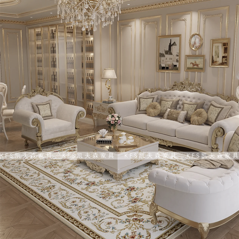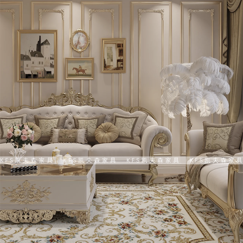 French light luxury palace style solid wood carved fabric sofa living room European high-end villa luxury concubine collapse combination